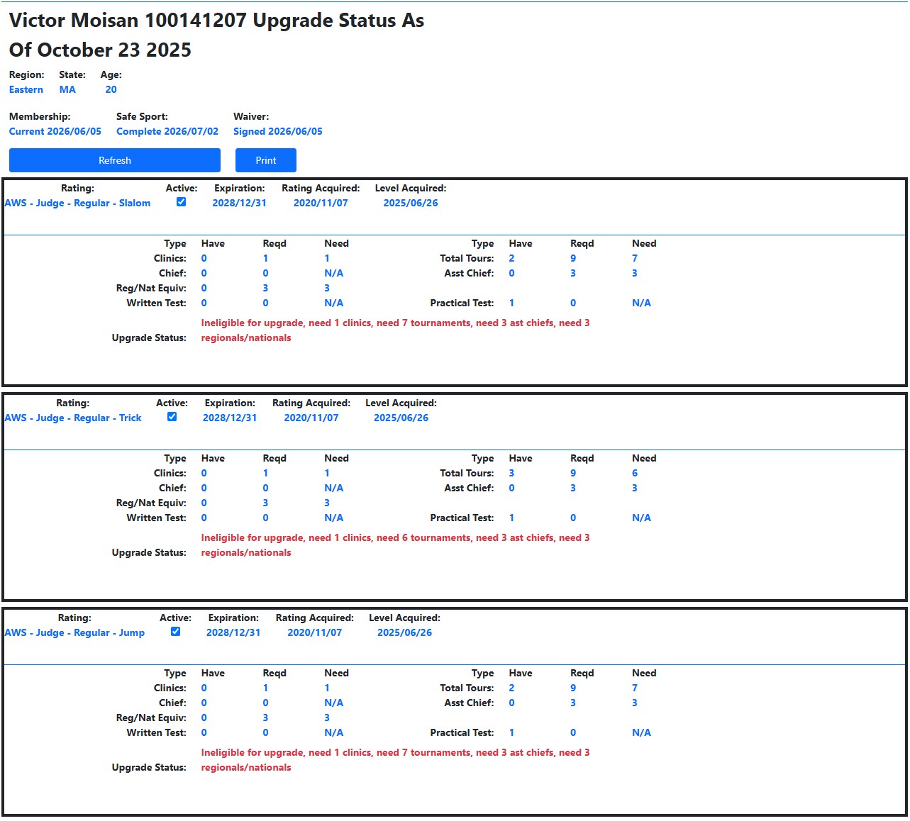 - View All Active Ratings – Instantly see your current ratings across all sport disciplines.